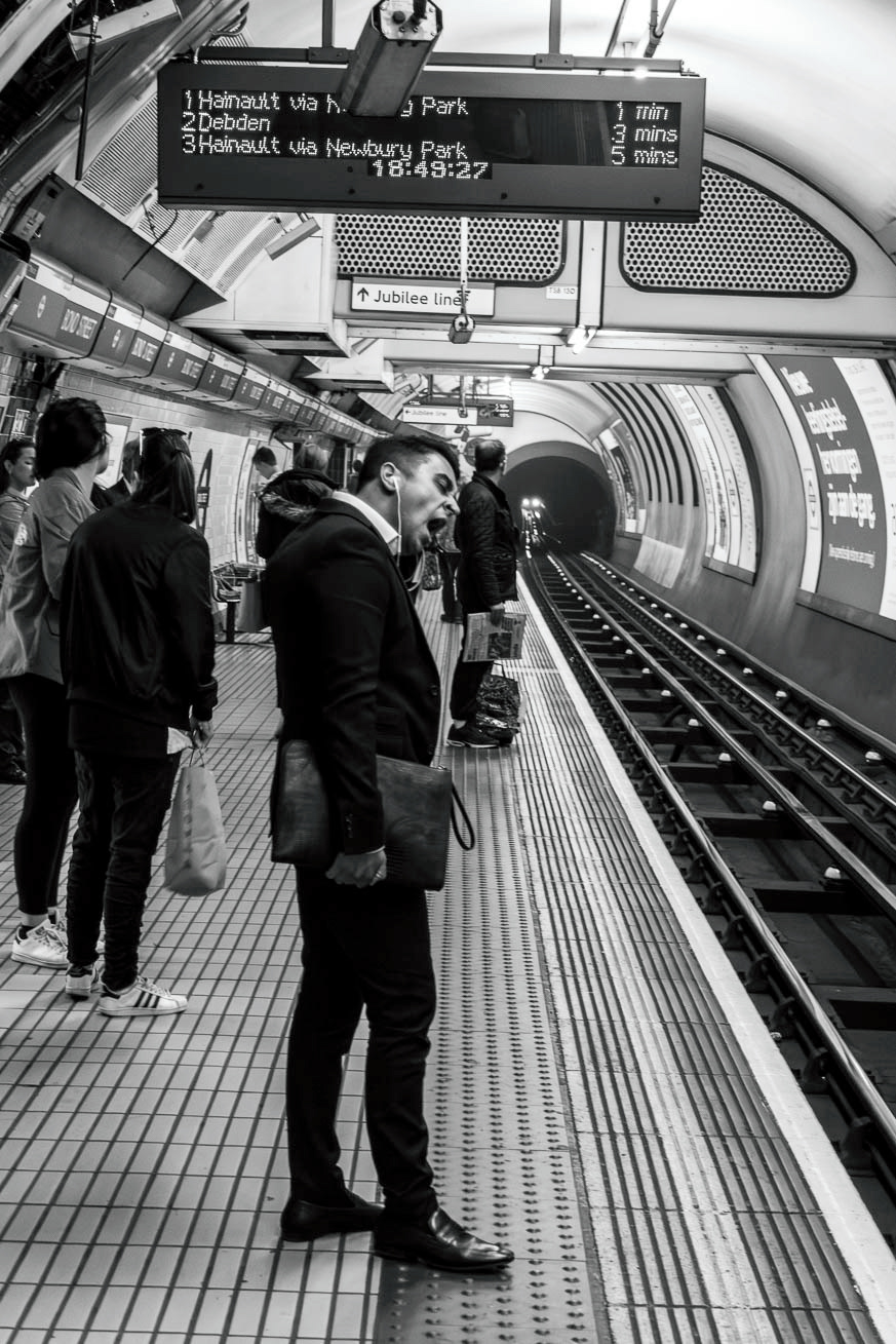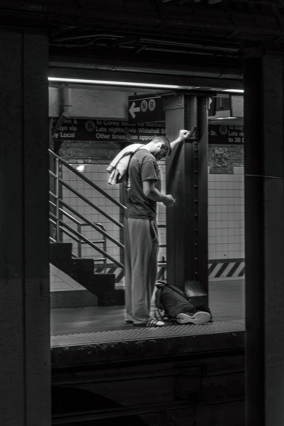 Dat vond ik fascinerend. Wanneer ik van mijn docenten de opdracht kreeg om een documentaire serie te maken over een maatschappelijk onderwerp, wist ik direct dat ik dit wilde vastleggen. Zo reisde ik ieder vrij moment met de metro. Van oost naar west en van het zuiden van Brooklyn richting Harlem om deze kwetsbare en soms grappige momenten te vangen. Soms van dichtbij, up close and personal, maar ook van een afstandje van een volstrekt leeg perron en 1 persoon die het patroon breekt. Sommige foto’s zijn grappig of kunstzinnig, anderen zullen je hart breken.